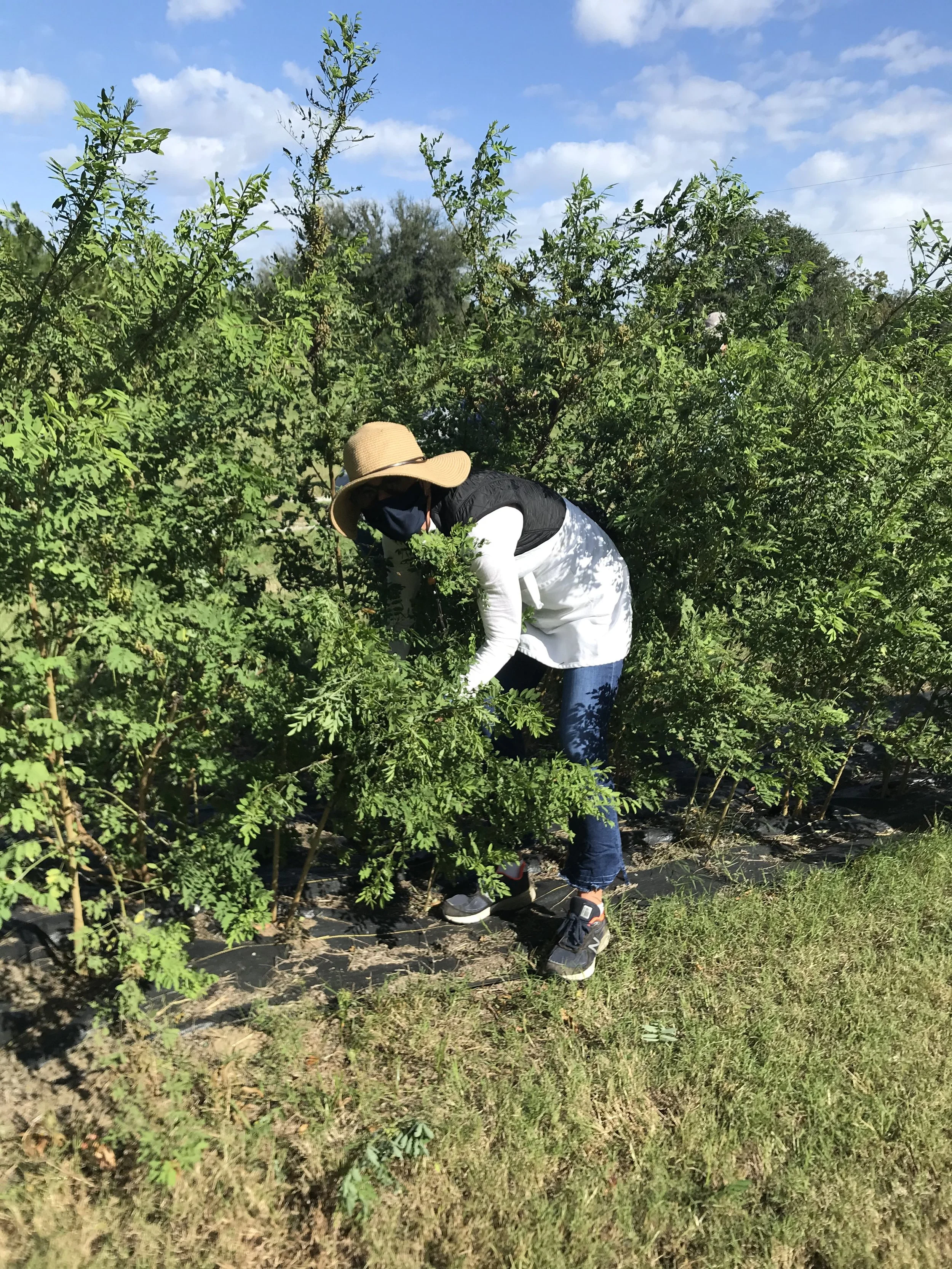 Once the indigo bushes have matured and their pink flowers turn into seed pods, the leaves are ready to be made into dye. The harvest season happens in South Carolina as early as August and runs through November (we like to tie dye Thanksgiving weekend with our family!)
